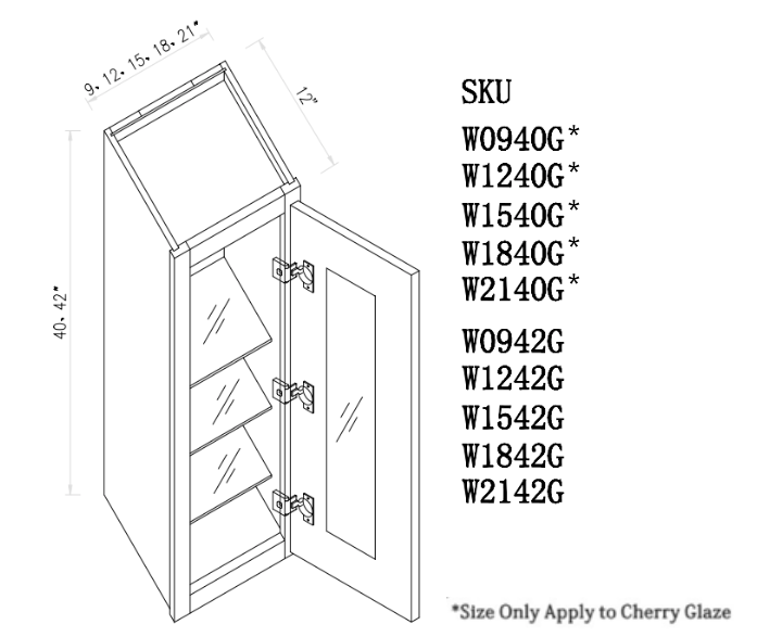 Cherry Glaze 40"H Glass Wall Cabinet-Single Door