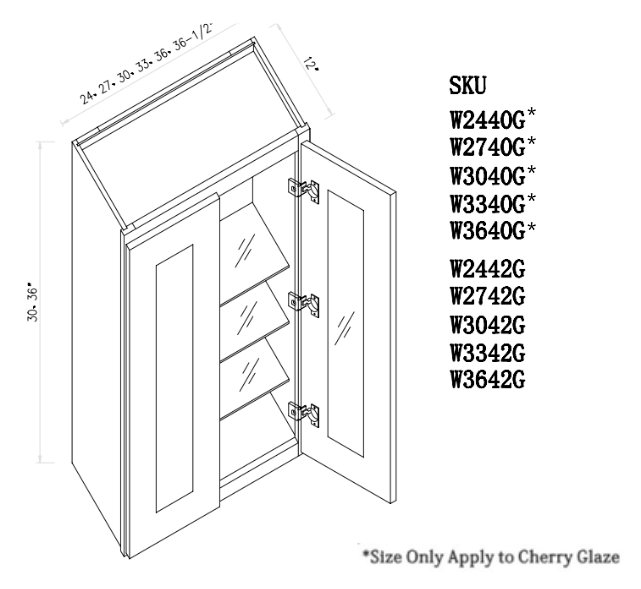 Cherry Glaze 40"H Glass Wall Cabinet-Double Door